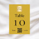 Gold Hintergrund, schwarzer Text. Personalisieren Sie Ihr Firmenlogo und fügen Sie Ihren Webseitenlink zum QR-Code hinzu. Personalisieren Sie Ihre Tischnummern und fügen Sie sie hinzu. Fügen Sie Ihre Nummern eins nach dem anderen hinzu.