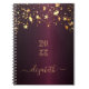 Ein dunkelbordeauxfarbenes Imitat mit metallischem Hintergrund und tropfenden Imitaten mit goldenen Sternen. Vorlage für ein Jahr (auf den Kopf gestellt) Personalisieren und einen Namen hinzufügen. Der Name ist mit einem goldenen, modernen, handgeschriebenen Stift geschrieben. Um die Swashes behalten, löschen Sie nur den Beispielnamen, verließ die Leerzeichen oder Emoji's vor und nach dem Namen