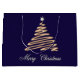 Einfach goldener Weihnachtsbaum mit frohen Weihnachten. Der Weihnachtsbaum ist eine Linie, die oben mit einem Stern zeichne.