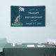 Ein Aquarellbild einer Schachtel-Golf-Fahne, eine Golftasche auf Rädern und ein eingezäunter Golfball auf dunkelblauem Hintergrund zeichnen dieses Banner der 50. Geburtstagsparty aus. Passen Sie das Banner mit dem Namen Ihres Freundes, Ehemanns, Kollegen, Partners, etc. an, damit Ihre Gäste wissen, wohin sie gehen sollen.