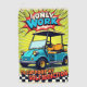 Dieses lebendige Design zeigt humorvoll einen blauen Golfwagen mit der kühlen Aussage: "Ich arbeite nur, um meine Golfabhängigkeit zu unterstützen." Das spielerische Design und das karierte Spielmuster unterstreichen die Leidenschaft und Hingabe von Golfenthusiasten, die ihre Liebe für das Spiel humorvoll zugeben.