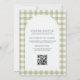 A charming all in one baby shower invitation featuring a classic green gingham background with a sweet golf theme. This design is perfect for celebrating a little golfer on the way with a preppy, timeless style. The all in one format keeps everything together in one simple card, making it easy for guests to receive the invite and respond. Your event details are clear and easy to read, while the soft gingham pattern adds a warm and welcoming touch. Ideal for boys baby showers, golf themed parties, and spring or summer celebrations. Fully editable text. Print ready design.