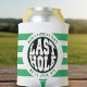 Celebrate the groom’s last swing before the ring with this green, black and white golf-themed bachelor party can cooler. The design features the phrase "Last Hole He’ll Ever Hit," making it a fun and fitting choice for a golf outing or bachelor weekend. Perfect for keeping drinks cold while toasting to the groom, this can cooler adds a playful touch to the celebration. Personalize it with the groom’s name and event details for a custom keepsake!