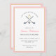 'Letzter Schwung vor dem Ring' Einfaches und elegantes pinkfarbenes und weißes Golfspiel Bachelorette Wochenende mit Reiseroute mit handgemalten Aquarellgolfklubs und Ball.
