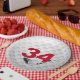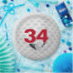 Nahes weißes Golfgelände mit einem Golfclub für die 34. Geburtstagsfeier. Alter ist essbar. Anzahl und Golfclub können gelöscht werden.