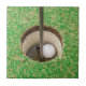 Foto eines Golfballs in einem Loch auf einem Golfplatz.