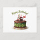 Auf dieser Geburtstagskarte befindet sich eine Schokolade-Kiwi-Geburtstagstorte mit einem Golfwagen. Dies ist eine großartige Geburtstagskarte für Golffans.