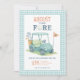 Boy's Golf Thema 4. Geburtstag Einladung. Wende Fore 4. Geburtstag Party Einladung mit prächtigen Gingham aquamarin blaues Muster und niedliches Lächeln Gesicht blauen Golfwagen. Holen Sie sich das Par-Tee für Ihren Jungen ab 4 Jahren! Füge sein Foto auf der Rückseite der Einladung hinzu.