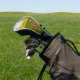 Ein Golfkopfbedecker mit einer wunderschönen Naturlandschaft: Ein Vogel, der auf einem verwitterten Zaun sitzt, Wildblumen, die um den Zaun wachsen, ein Bauer auf einem Traktor, der sein Land bearbeitet, Bäume mit Blätter und Bauernland mit verschiedenen Farben. Hintergrund, Bild und Text können personalisiert sein. Original-Kunstwerk von W.B.