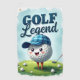 Diese spielerische Abbildung zeigt einen bezaubernden Golfballcharakter, der einen blauen karierten Deckel und rote T-Beine verbindet. Set vor einem sanften, wasserfarbenen Hintergrund, die Szene umfasst verstreute Golfclubs und Bälle auf einer Wiese Landschaft. Der Text "GOLF Legend" fügt eine mutige und spielerische Touch hinzu, die eine lustige Geschichte oder ein Konzept nahe legt, die sich um die Golffreunde des Charakters dreht.
