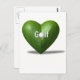 Grünes Grasherz mit einem Golfball und Botschaft für Golfliebhaber Postkarte.