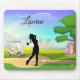 Golf Mousepad mit Golfer Swinging und rosa Golfwagen und Golftasche.