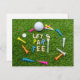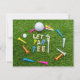 L'invitation à la partie Golf Par avec balle de golf et tee - shirts colorés est sur l'herbe verte.