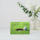 Simple nouveau carte de visite à thème de golf avec l'image d'une balle de golf sur le terrain de golf vert près du trou et de l'agencement vous pouvez customiser en ligne. Créé pour toute personne impliquée dans des cours de golf, des fournitures ou du matériel de golf, ou un club de golf.