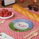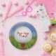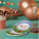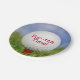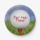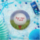 Par-tee-Zeit weißer Golfball auf rotem Tee in grünem Gras. Nachrichten auf Ball können bearbeitet werden.