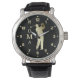 Uhr, Vintage Männeruhr mit schwarzem Lederarmband