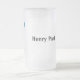 Personalisierter Golfer, mit einer Kappe, rotes Shirt und blaue Hose, die einen Golfball in ein Loch Design mattiert Bierbraut Tasse.