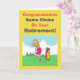 Eine Golf Themed Rentenkarte für Frauen, die Sie mit dem Namen des Empfängers personalisieren können. Fügen Sie Ihre eigene Nachricht hinzu. Eine Rentenkarte für eine Frau, die Golf mag, oder eine Dame Golfer. Der sonnige Cartoon einer Golferin in einer Drehung.