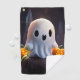 Niedlicher Baby Ghost Charakter umgeben von Kürbissen auf einem gruseligen Halloween-Ambiente. Original Digital Art Copyright BluedarkArt.