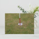 Golfplatz auf Grün mit rotem und weißem Vorhängeschild. Fotografie.