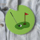 Ein Beispiel für ein niedliches Golfgelände, eine Fahne mit roter Flagge und ein Golfclub für Golfliebhaber. Dieses einfache Sportdesign ist eine Geschenkidee für Kinder, Golftrainer, Vater und Mutter und Sportliebhaber.