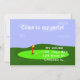 Die Party Einladung des niedlichen Golfplatzes verfügt über eine handgezeichnete Szene eines Golfplatzes mit einem Ball. Es hat Wolken im blauen Himmel und es sagt, komm zu meinem Party. Dieses Party lädt Sie zu einem Golfurlaub oder einer Golf-Geburtstagsparty ein.