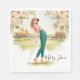 Feiern Sie ihren letzten Tag vor den Gelübden mit diesen stilvollen Golf-Junggesellinnenabschied-Napkins, die eine selbstbewusste Golferin auf dem Golfplatz zeigen. Der Entwurf im sanften Wasserfarben-Stil fängt eine spielerische und dennoch elegante Atmosphäre ein – perfekt für Bräute, die Golf lieben und ein einzigartiges Party-Thema suchen.