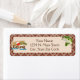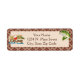 Dieses Label hat einen braunen Hintergrund mit einem beigen Kästchen oben. Auf dem links Schild steht ein "Gone Fishing" und auf der rechten Seite ein Bild eines Fisches. Sie können dieses Label mit Ihren Informationen anpassen.