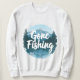 Ein stilvolles Design mit einem Bergsee und dem Text "Gone Fishing".