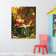 Ein bezauberndes Weihnachtsposter mit dem Weihnachtsmann, der von seinen fleißigen Elfen umgeben ist, Listen von Wünschen liest.