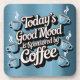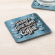 Dieser blaue Untersetzer zeichnet sich durch ein Design aus, in dem die gute Stimmung von heute durch den Kaffee in metallischer Silber-Schrift gesponsert wird. Ein paar hellblaue Kaffeetassen sind rund um den Text. Der Hintergrund ist ein metallisches Blau, das den silbernen Text und die blauen Becher ergänzt. Der Untersetzer ist ein quadratischer Untersetzer aus Kunststoff mit einem Korkunterteil. Es sind sechs Untersetzer im Untersetzer Set.