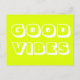 Good Vibes, Best Wishs, Viel Glück, chartreuse grüne Nebel, weiße Postkarte