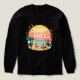 Eine fröhliche Picknickszene am Strand mit Surfbrett, Palmen und Sonnenuntergang, die "Gute Bilder in einem Während!" verbreitet. Ideal für entspannte Tage, Sommerstimmung und sorgenfreie Momente. Lass die guten Villen rollen, wo immer du hingehst!