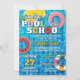 Schwimmbecken wieder zum Party der Schule mit dem Abschiedsbecken Hallenschule in einem lustigen Typografie-Design gegen eine Abbildung eines Schwimmbeckens mit Schwimmbecken und aufblasbaren Materialien in Form einer Sprinklerflasche, Ananas, Wassermelone und ein klassischer Schwimmring.