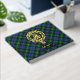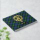 Clan Gordon Wappen Abzeichen umgeben von einem Gurt und Schnalle über Tartan Hintergrund. Benutzerdefinierter Vorder-, Rücken- und Rückentext.