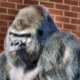 Ein fotografisches Design eines niedlich nachdenklichen Gorillas.