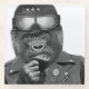 Dieses die Ausrüstungsbeschreibungen ein Gorilla kleideten in einer Lederjacke, in den Schutzbrillen und im Sturzhelm an.