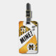 Dieses lustige Zebrastreifen-Gepäckanhänger eines Mädchens aus Volleyball ist mit einem abstrakt vergrößerten Volleyball mit einem wilden Zebrastreifen-Akzent-Muster und einem orange/goldenen Hintergrund ausgestattet, der mit den restlichen weißen Volleyballplatten kontrastiert - fett typografischer Text lautet "Mine!" und "Got!" - den Rücken mit ihrem Namen, Adresse, Telefonnummer - von katz - von katz_d_d_zynes