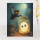Halloween Szene mit Geist und schwarze Katze.