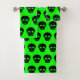 Goth Black Lime Green Skull Pattern Badhandtuch Set