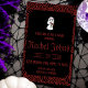 Cette éffrayante invitation à la douche nuptiale est tout aussi lugubre qu'elle est glamour avec une mignonne mariée en squelette au sommet entourée d'une fine fissure rouge pour aider à créer un look vintage. Un texte hanté et anglais accompagne l'arrière - plan luxueux en fibre rouge pour un look sophistiqué, mais déplaisant, ce qui le rend parfait pour votre prochaine douche mariage ou nuptiale ! Si vous avez un mariage d'Halloween ou une douche nuptiale, cet invitation nuptial d'Halloween est fait pour vous !
