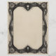 Ein aufwändiger schwarzer Rahmen mit Skullen an den oberen und unteren Mittelpunkten auf einem alten Pergamenthintergrund schafft die perfekte Goth Schreibwaren. Sehr schön und dunkel.
