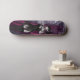 Skateboard mit einem schönen, beängstigend aussehenden, schwarz stehend gekleideten Gothmädchen vor prächtigen lila / roten Vorhängen, einem gotischen Fenster und spukhaften Spinnweben. Ein stilvolles und originelles Geschenk für ein Gothmädchen. Benutzen Sie es für den vorgesehenen Gebrauch oder hängen Sie es als Kunst an der Wand! Aus herrlich gotischen Designs.