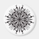 Gotischer Mandalammagnet mit Blätter und Schlangen digital gezeichnet in Schwarz-Weiß, stipple schattiert.