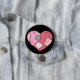 Inspiriertes Button mit schwarzen runden Tasten mit rosa, schwarz und grau gepolstertem Herz.
