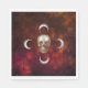Goth Magik Vintage Skull Illustration mit vier silbernen Wappen Monden auf rotem Himmelshintergrund.