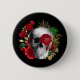 Goth Skull mit Red Blume & Gold Blätter Button