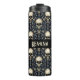 Alte Schädel in einem blauen, elfenbeinähnlichen, blumenähnlichen Muster schaffen einen schönen, ungewöhnlichen und gotischen Thermalwäscher. Personalisieren Sie mit Ihrem Namen in einer schwarzen Band in der Mitte.