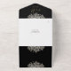 Das Ganze in einer gotischen Hochzeitseinladung mit schwarzen und goldenen Rose, die auf elegante Typografie fallen. Die Einladung enthält eine perforierte RSVP-Karte, die Ihren QR-Code für Ihre Hochzeitswebsite und Details enthält. Entwickelt von Thisisnotme©