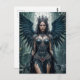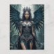 mysterious black angel with expansive wings, adorned with a dark crown, standing in an ancient gothic hall, emanating a dark allure.